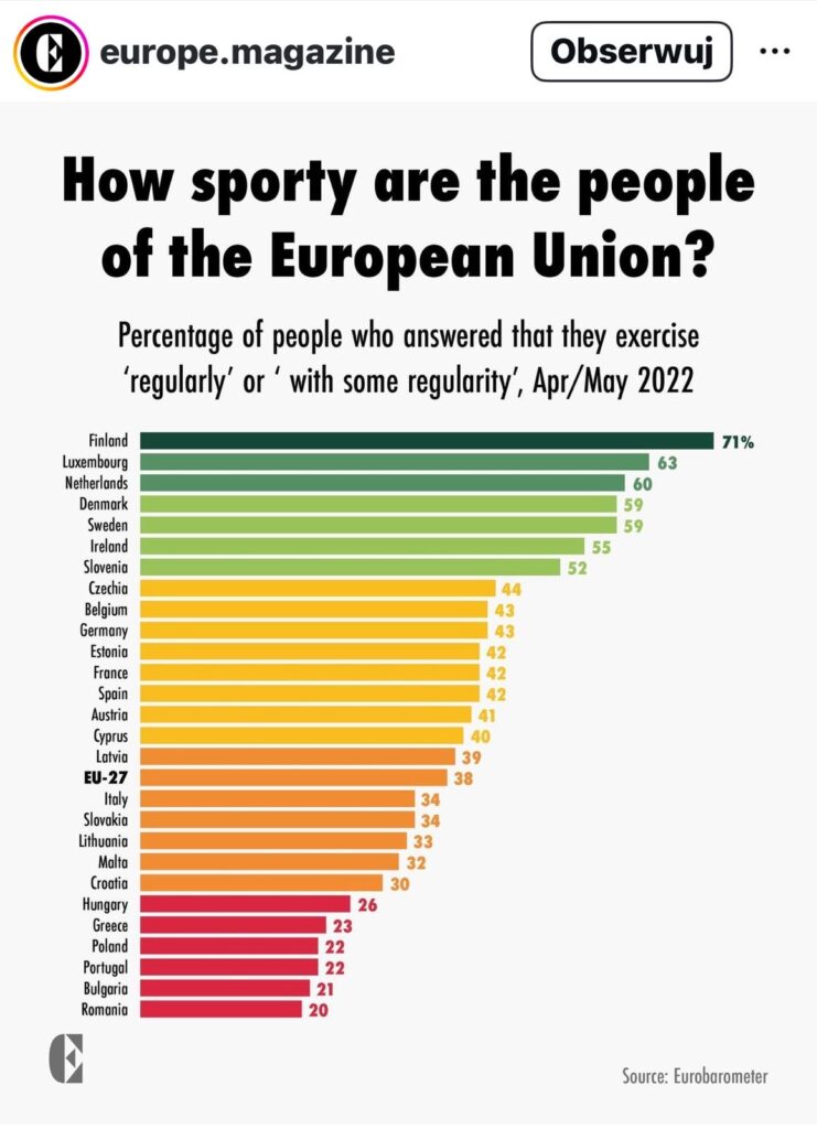 Polska w ogonie Europy pod względem aktywności fizycznej