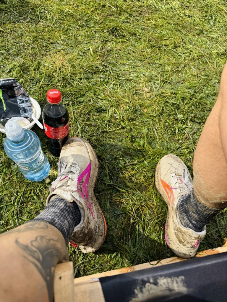 Deszcz, który padał przez kilka godzin przed startem, sprawił, że trasa zamieniła się w błotniste wyzwanie. Cały bieg był walką o to, by się nie przewrócić – mnie się udało, ale widziałem sporo epickich upadków po drodze.